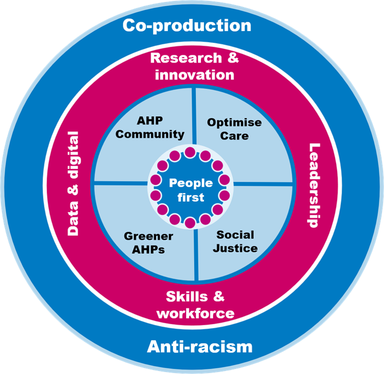 This new strategy is for the whole AHP community, unregistered and registered colleagues, as well as students. It is inclusive and reflects how AHPs work in multidisciplinary teams, so that those who identify as part of the AHP community, working in a variety of health and care sectors, can use it to continually improve and redesign services.