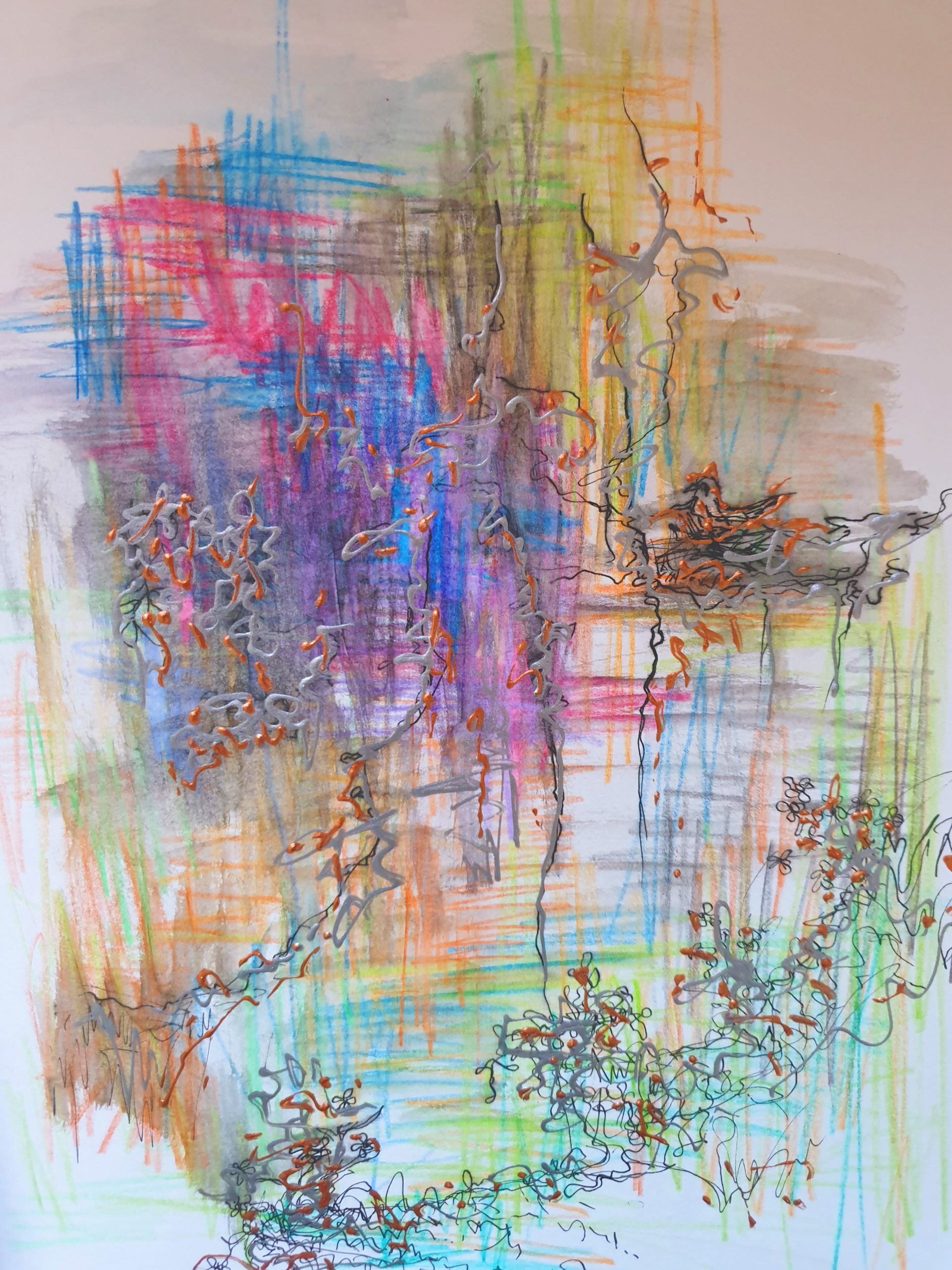 When we see the landscape, it seems crystal clear – everything in its place. But at times, for art therapists, for our clients, that is just not so. A natural order becomes disordered, colours fragmented, and shapes unrecognisable. An abstracted fog of energy can bombard us, numbing us. Yet, if we sit with it and allow curiosity… I wonder? Maybe then, for a fraction of a moment, the fog could pass… things may become distilled again.